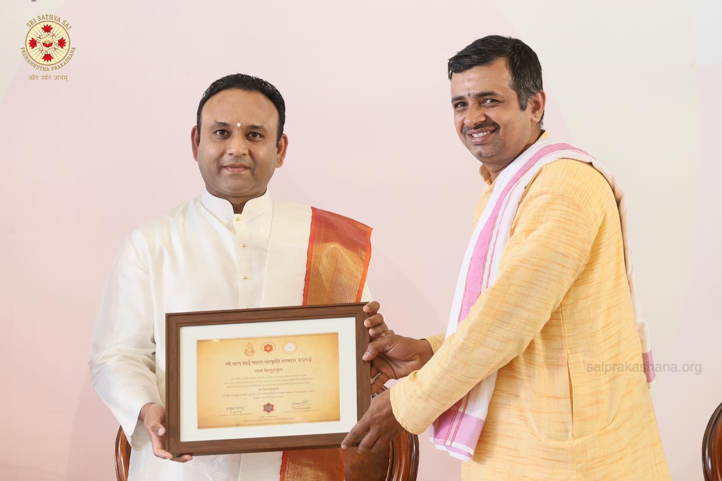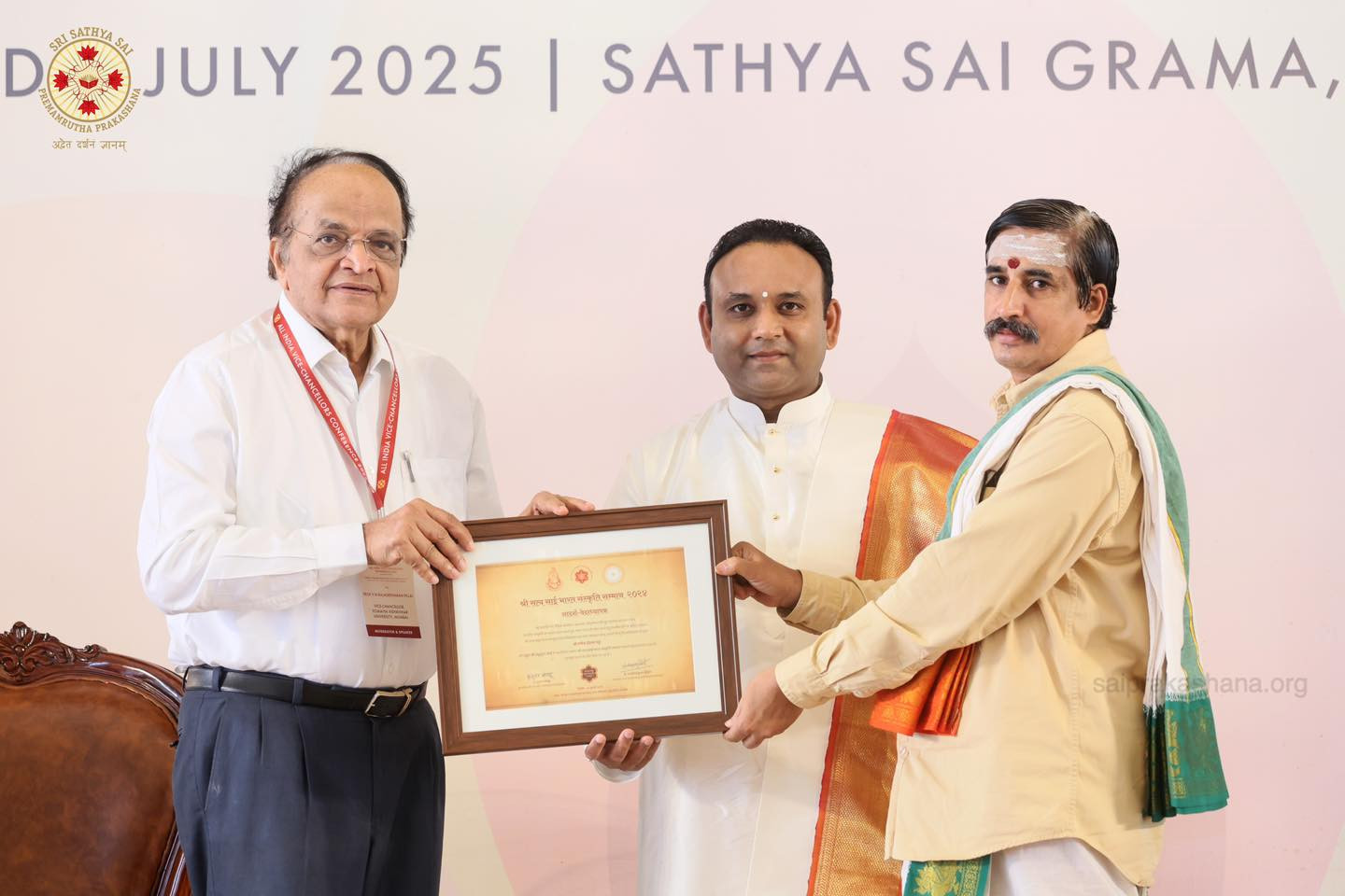 ‘Sri Sathya Sai Bharath Samskriti Samman’, a ceremony to honour the vedic tradition of India was held as part of the Inaugural Session of the Conference. The Samman chose the best vedic student, the ideal vedic teacher, and the best vedic pāthaśālā or gurukulam across the country, and awarded them with a cash prize, citation and medal, in an effort to encourage vedic learning and foster vedic culture.