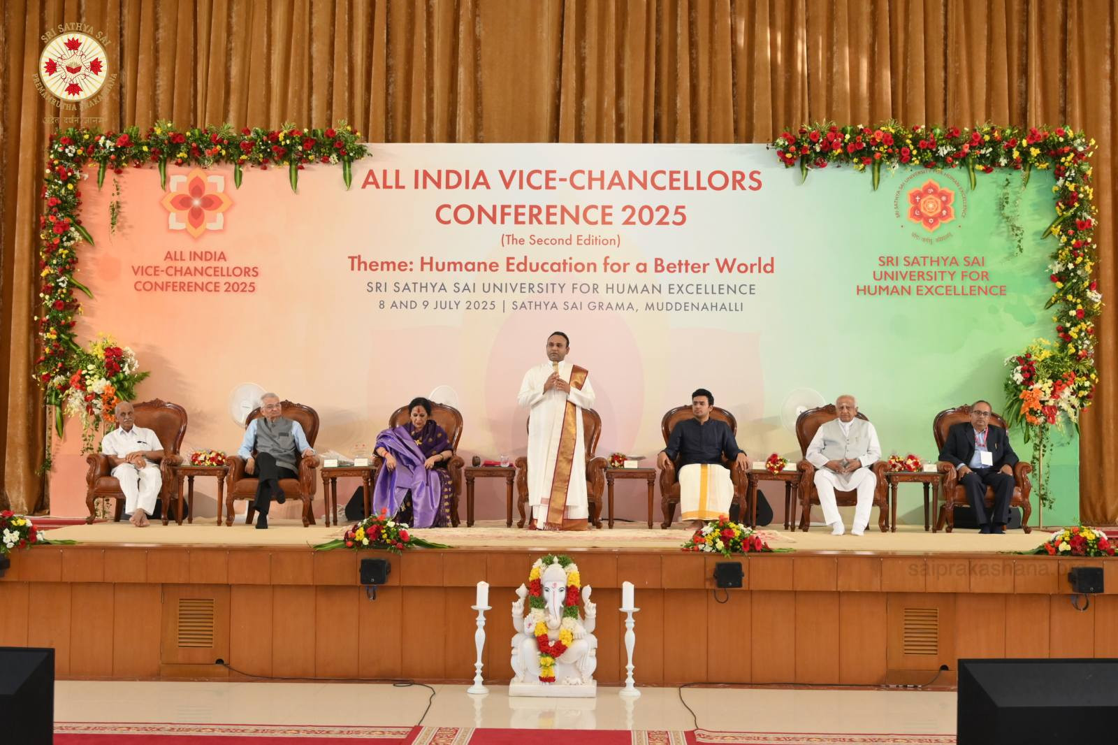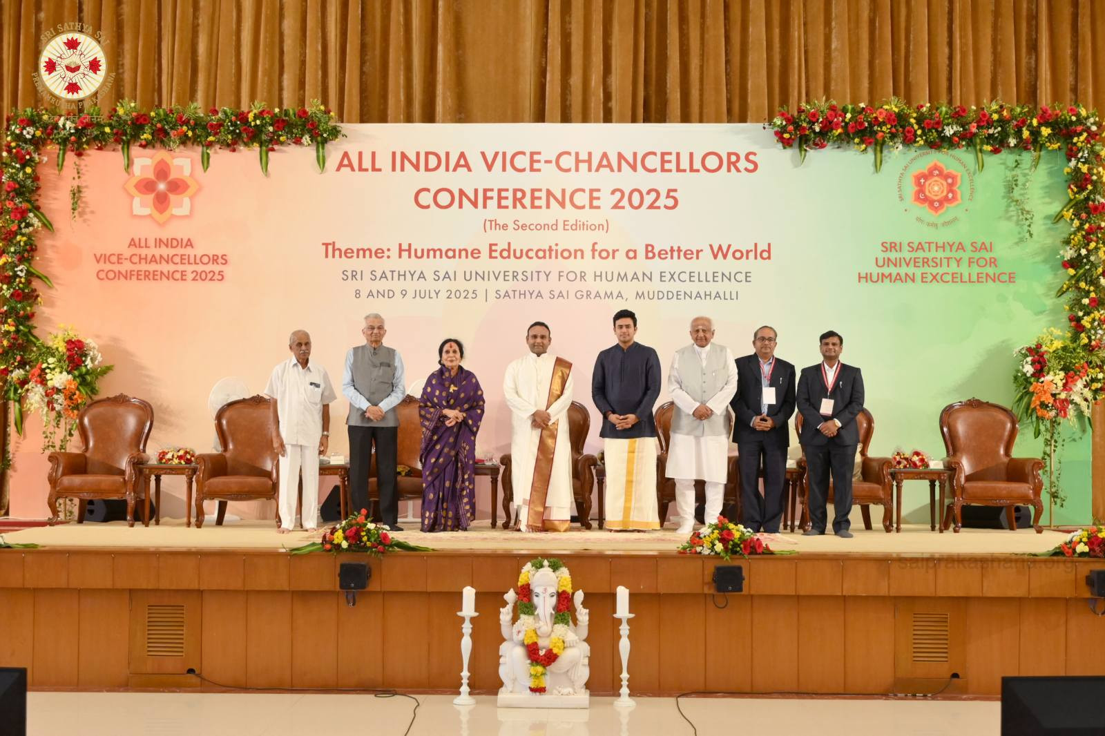 It is in this context that the University organises several conferences and events at the national and international levels to galvanize collective momentum to achieve common goals. With an objective of improving the quality of higher education by infusing and strengthening the ‘Values-Based Education’ component in them, the University organised an All India Vice-Chancellors Conference in February 2025 on the theme ‘Values-Based Education in the Indian Context’ under the guidance of its Founder Chancellor, Sri Madhusudan Sai. The conference attracted university leaders from 18 States, including 44 Vice-Chancellors from 50 Universities. Buoyed with the positive feedback and deep appreciation for this Conference from the participants, the University continued its efforts towards revolutionizing the higher education system of the country by launching the second edition of All India Vice-Chancellors Conference that was held on 08 and 09 July 2025, with the theme ‘Humane Education for a Better World.’