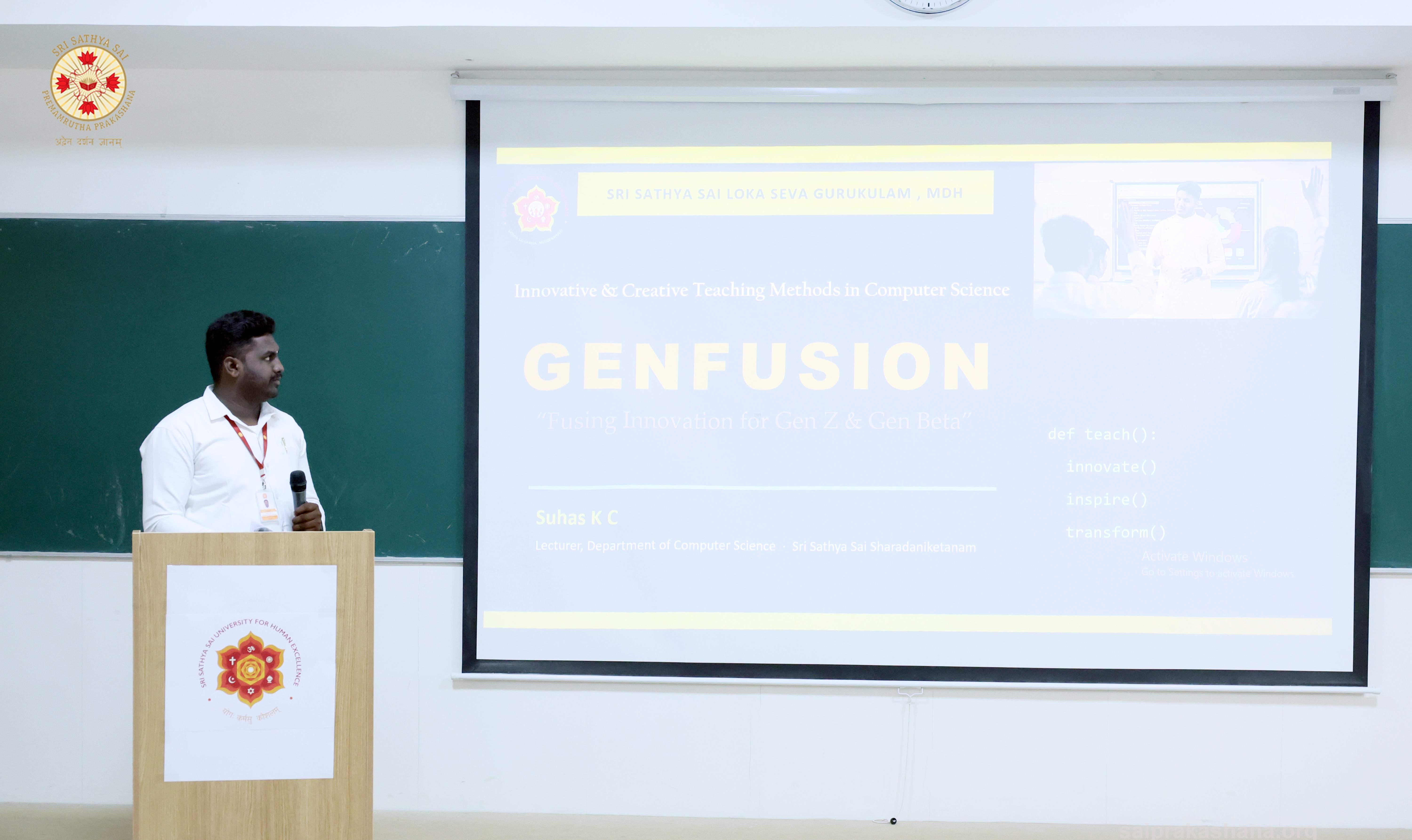 The Innovative Teaching Competition was held on the 21st and 22nd at Sathya Sai Grama, Kripashraya, organised by DIGITREC Team, SSSUHE. The two‑day event aimed to inspire educators to adopt creative, joyful, and student‑centric teaching methods, in line with the institution’s commitment to enhancing the quality of education.