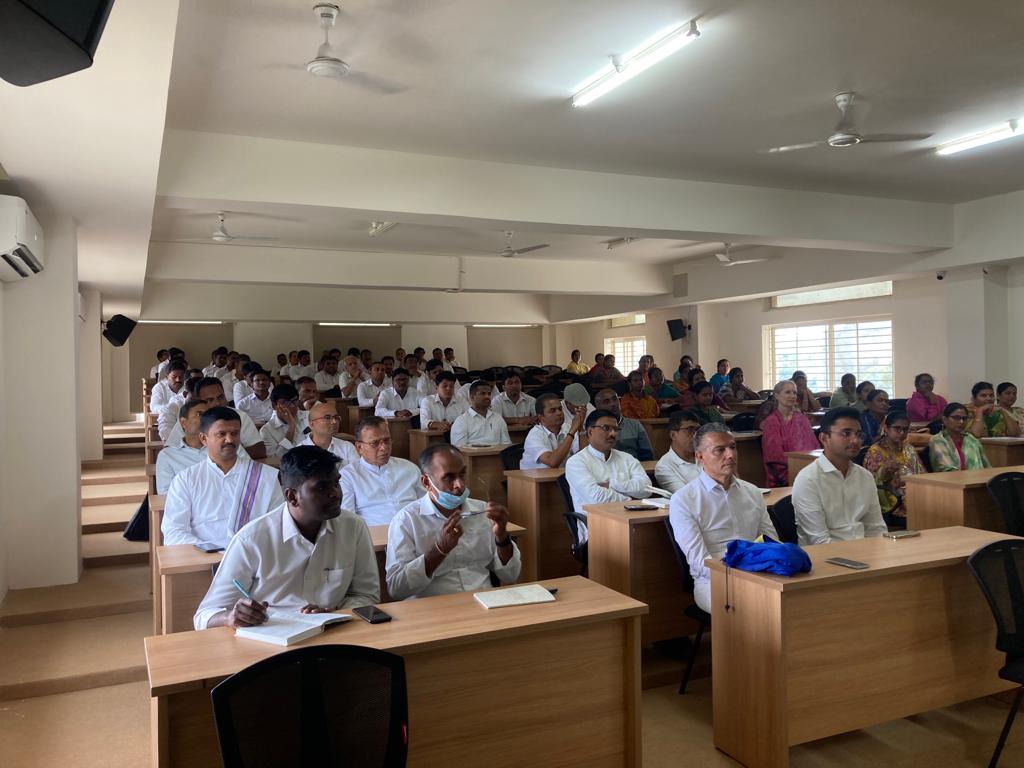 Dr Hanumanth appreciated all the departments in Muddenahalli Campus and the people who worked consistently for the Convocation event. He welcomed the new staff members and stressed on the importance of strengthening the spiritual journey of each member. He also shared some practices that help to receive the message more effectively, such as talking less, using mobile phones less, and focusing on one thought.