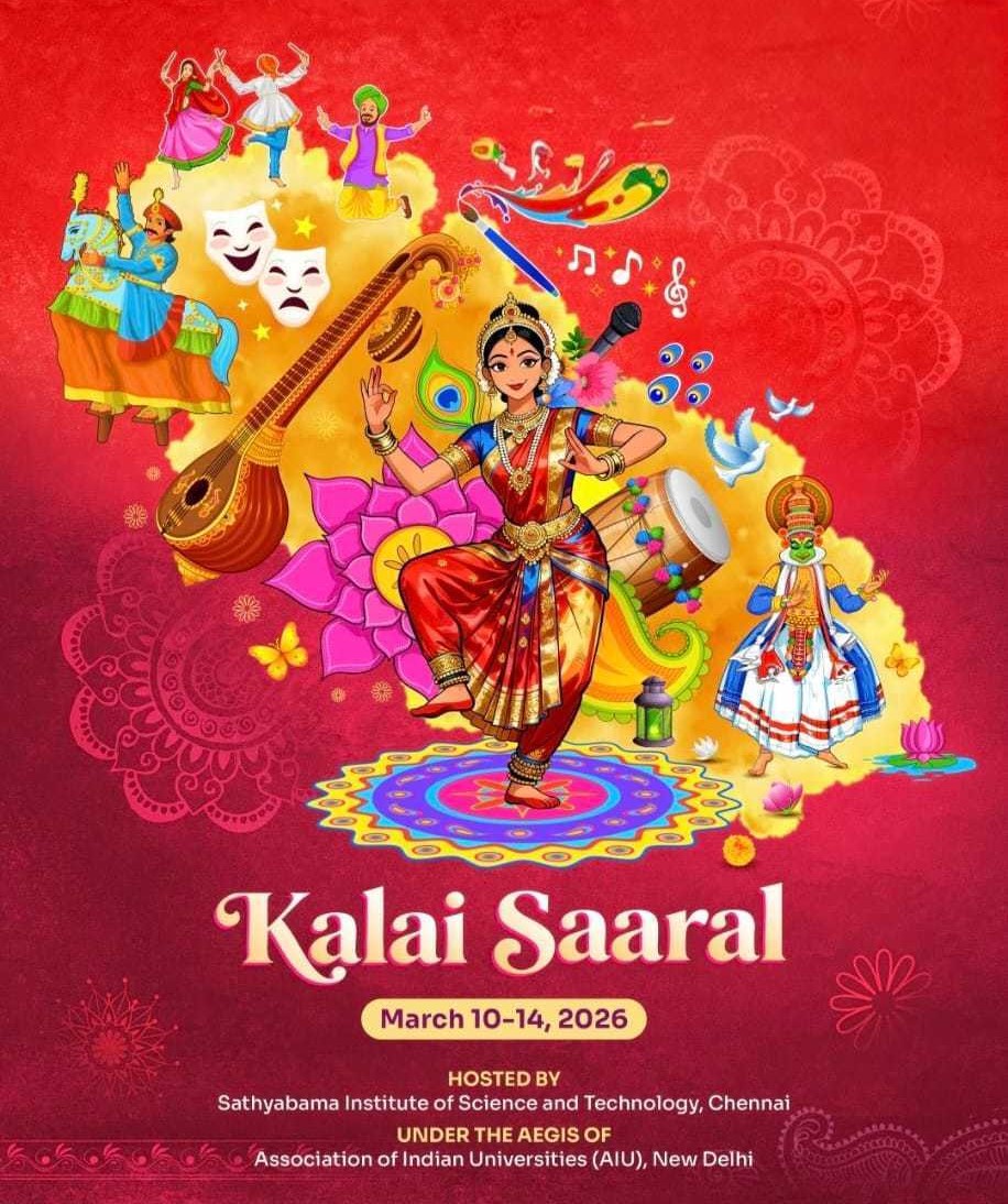 Kalai Saaral 2026, the 39th Inter‑University National Youth Festival (UNIFEST), hosted by Sathyabama Institute of Science and Technology, Chennai, brought together the finest student talent from across India. Organized under the aegis of the Association of Indian Universities (AIU), the festival is one of the nation’s most prestigious cultural gatherings.