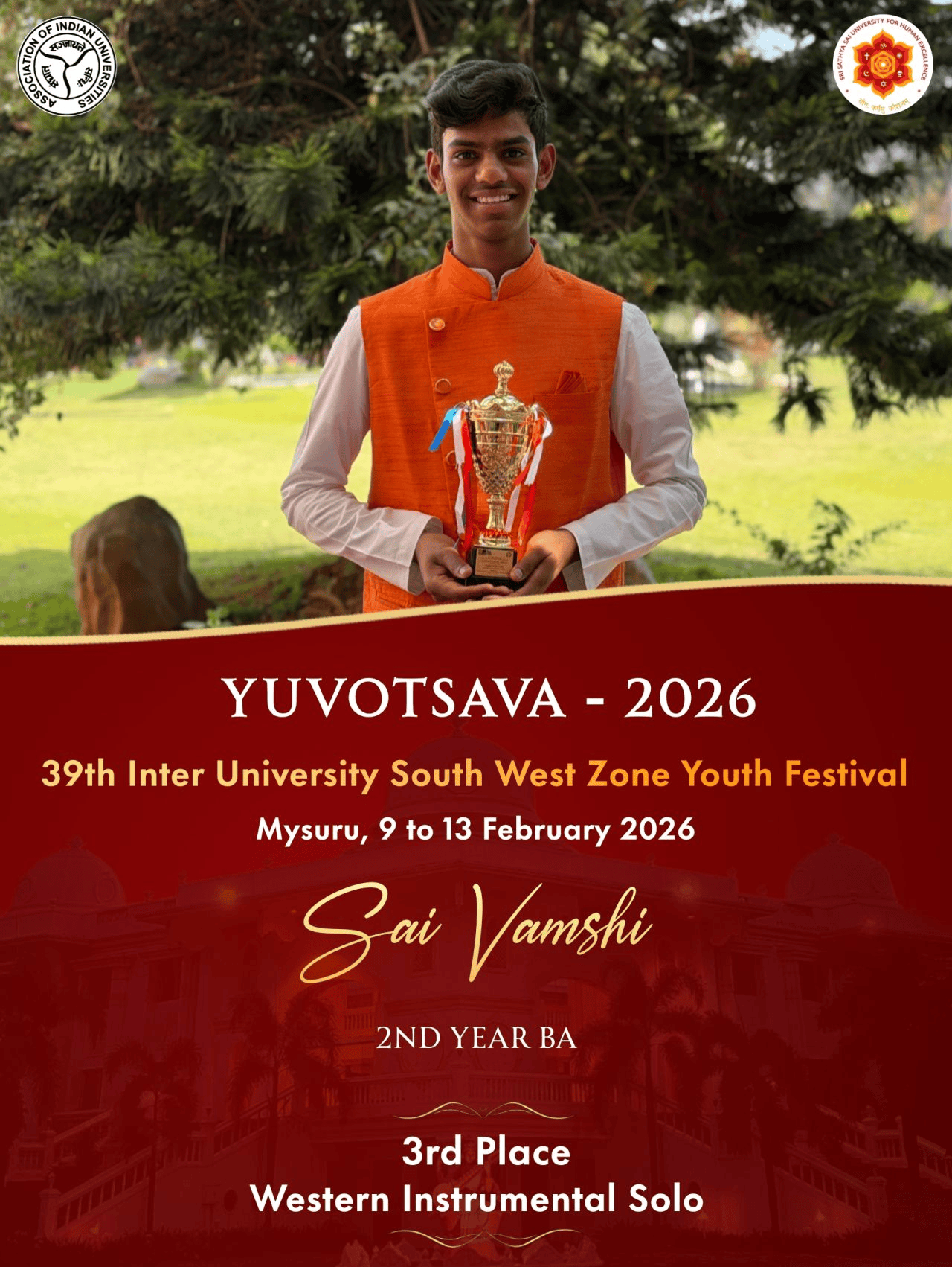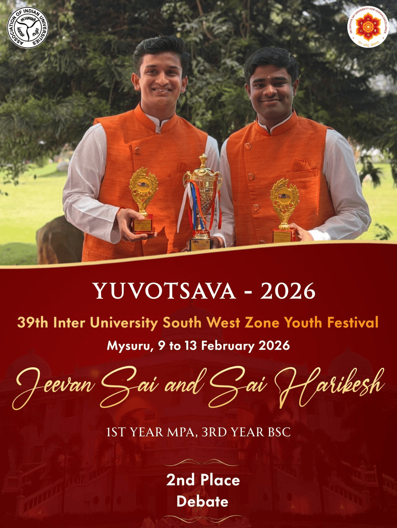 Amid this vibrant cultural showcase, students of Sri Sathya Sai University for Human Excellence delivered outstanding performances, securing top honours across multiple categories: